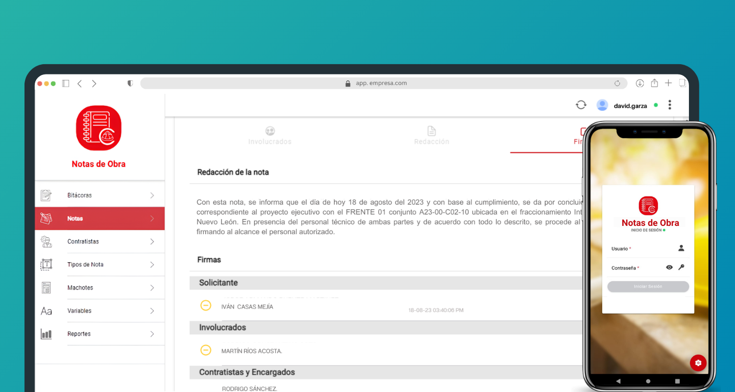 Plataforma web y móvil que registra bitácoras de eventos importantes dentro de la obra.