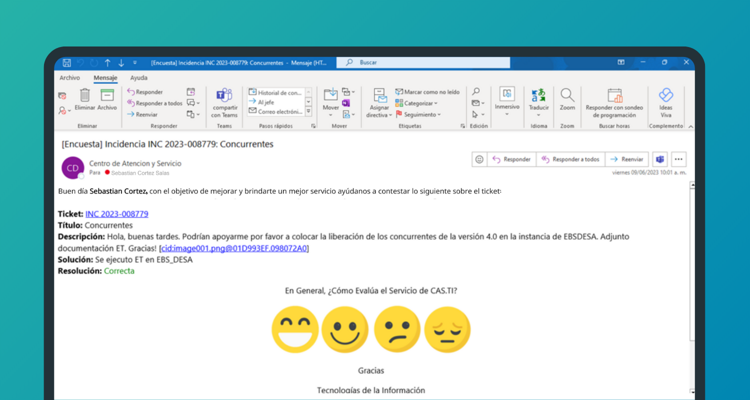 Aplicativo que envía encuestas por correo para evaluar la calidad del servicio interno