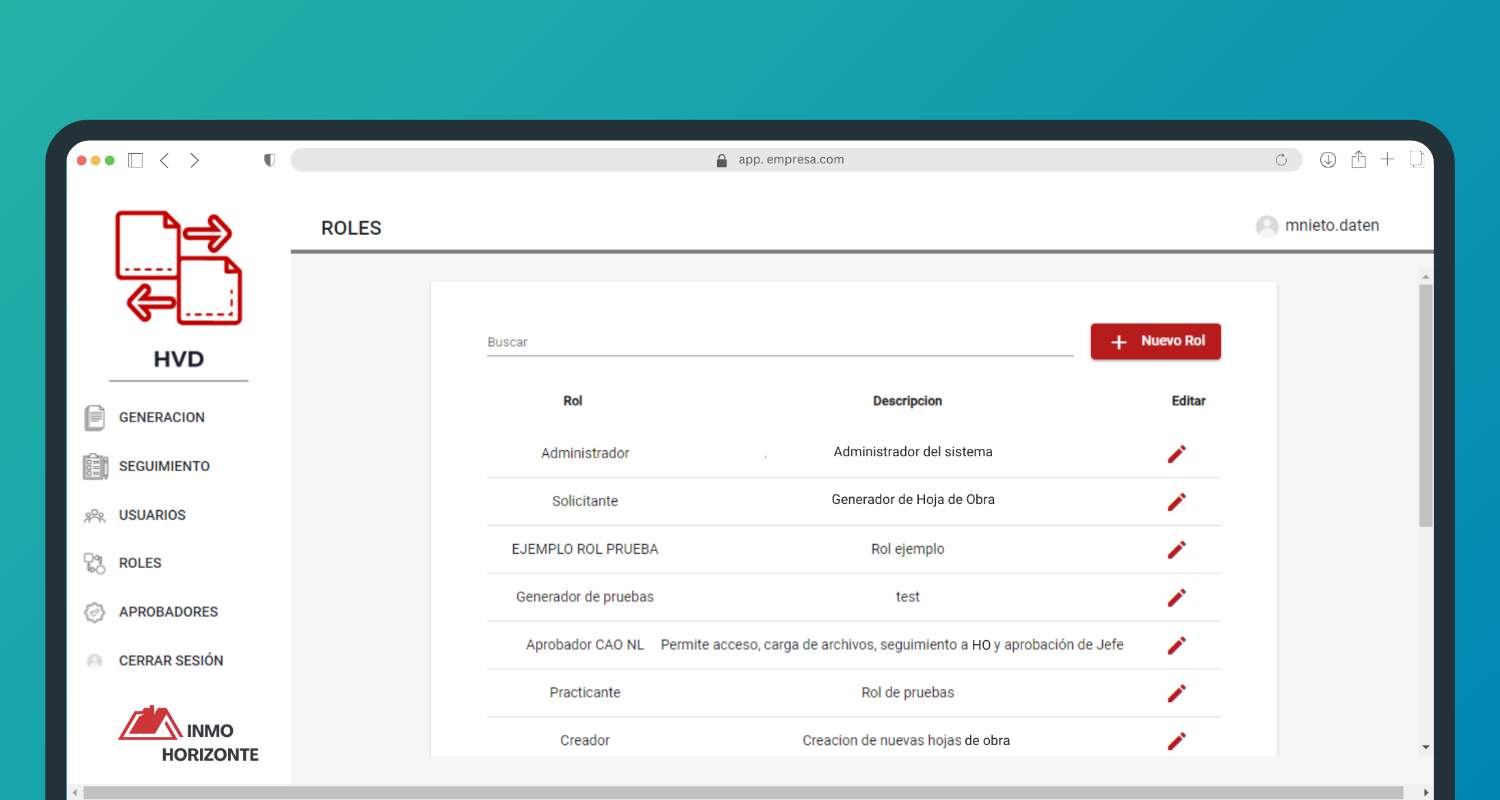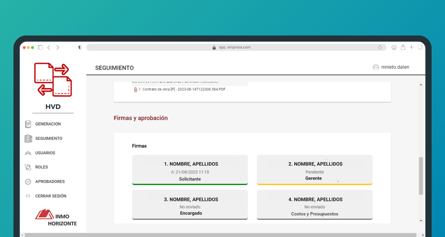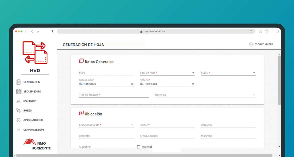 Plataforma que centraliza la creación, aprobación y control de hojas de obra, permitiendo a los equipos de construcción documentar cambios, registrar avances y formalizar autorizaciones con firmas electrónicas. Facilita la trazabilidad de cada solicitud, la gestión de roles y la aprobación jerárquica, garantizando control y transparencia en el proceso constructivo.